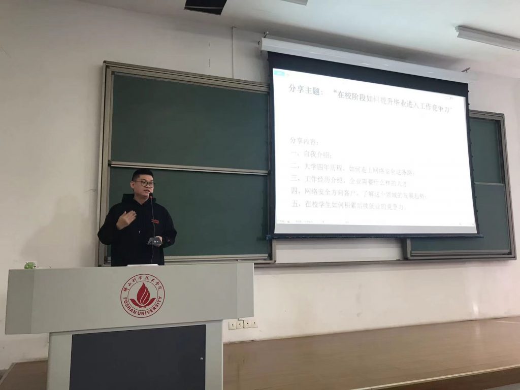 2010届网络工程毕业生校友谢奕智现已是专家级工程师,就职于腾讯科技(深圳)有限公司,是公司云主机安全研发负责人,主要负责腾讯云主机安全,容器安全相关产品。他为大家带来了《在校阶段如何提升毕业进入工作竞争力》的精彩分享,讲述了自己大学四年的历程,以及是如何走上网络安全这条路。他通过分享自己的工作经历,让大家看到企业需要什么样的人才,以及网络安全领域的发展趋势和在校期间应该所做的能力储备。