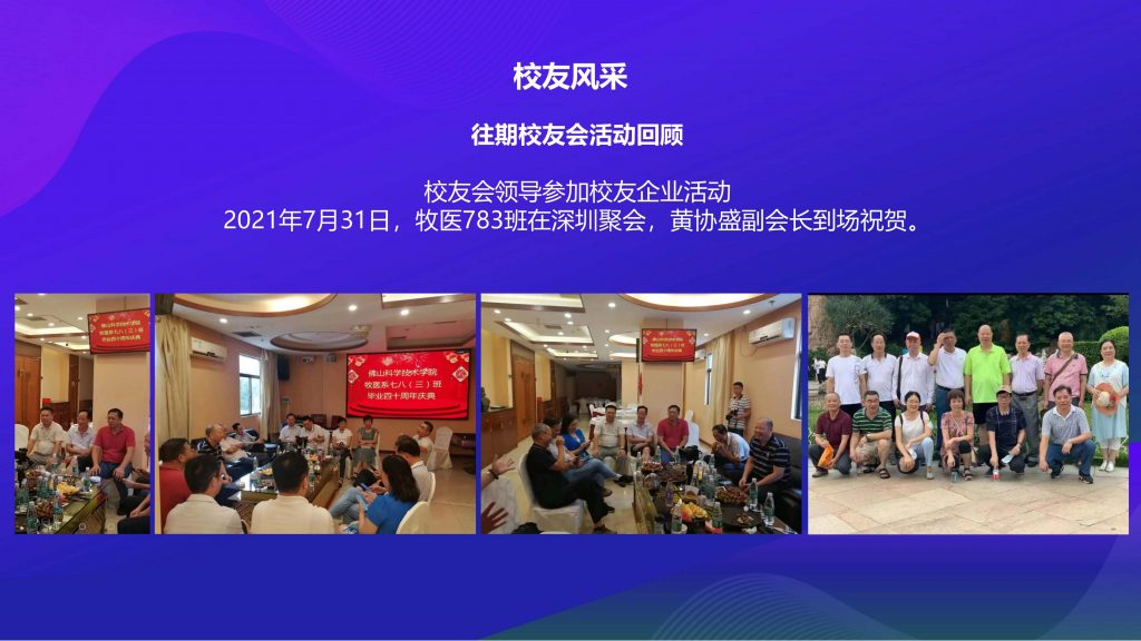 校友会领导参加校友企业活动 2021年7月31日,牧医783班在深圳聚会,黄协盛副会长到场祝贺