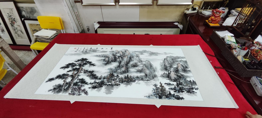 (顾问李俭光执笔国画一幅:《青山不老》)