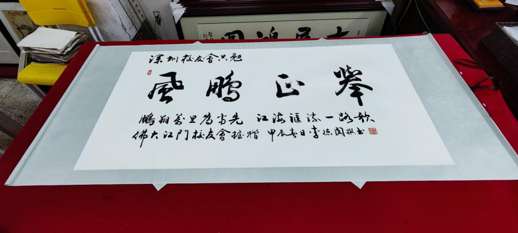 江门校友会来访带着诚意,向深圳校友会赠送了两幅字画: